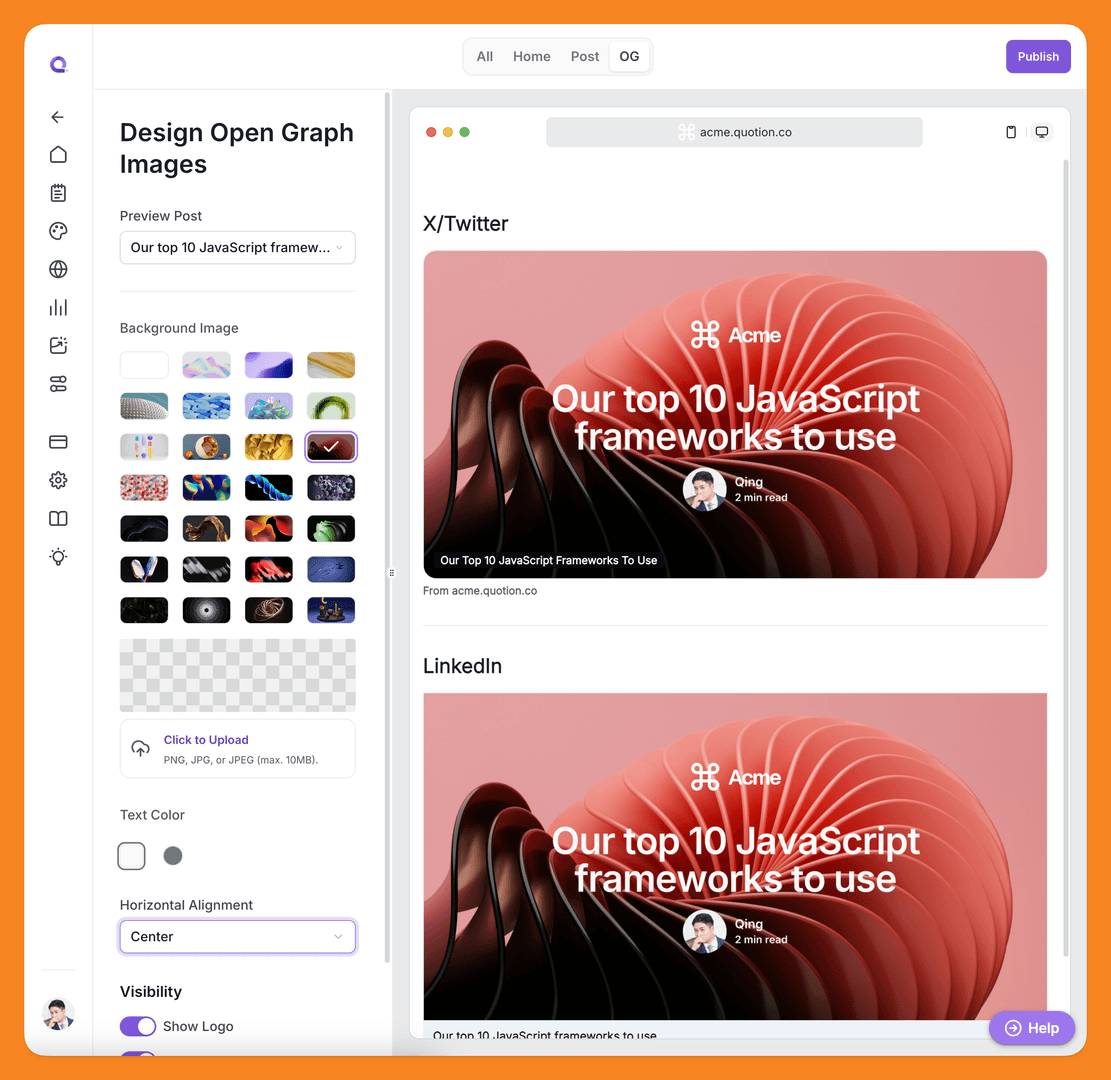 Introducing customizable OpenGraph images for enhanced social media sharing. You can now fully control how your content appears when shared across platforms with the following options: