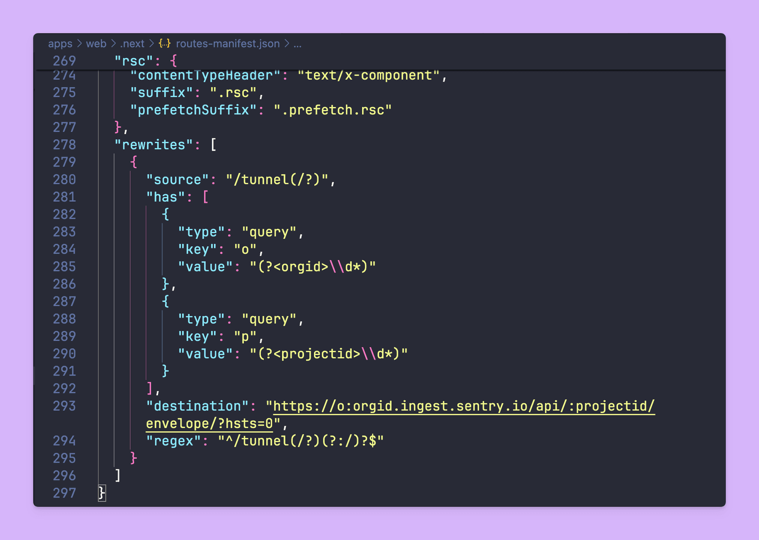 I checked the Sentry docs, but nothing helped. One day, while searching for something inside the Next.js build output folder .next, I found that the Sentry /tunnel API is being used for rewriting to Sentry's API: